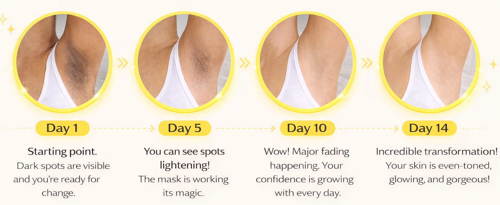 See visible results day by day as your skin transforms to an even, glowing tone.